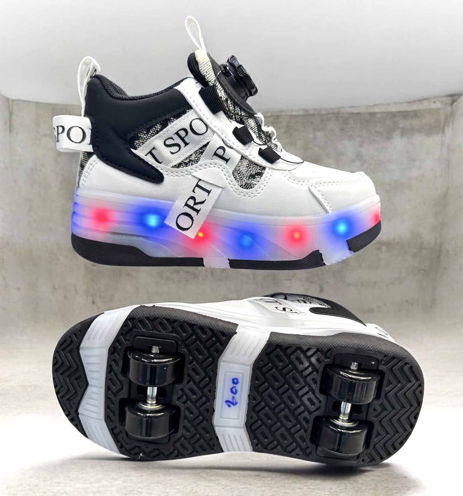 دستهبندی: کفش بچه گانهکشور تولید کننده: چینخصوصیات: اسکیتی ، زیره طبی و ضد اب ، شارژی،مورد استفاده: اسکیت و بدون اسکیت راحتی و روزمره